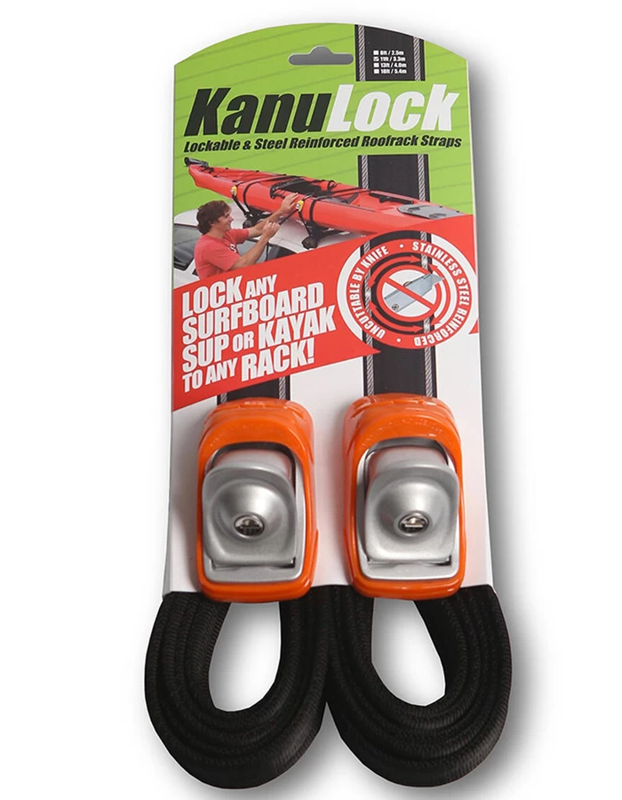 Lock any board or kayak to any roof-rack, it is so simple. Reinforced with stainless steel they can’t be cut with a knife.