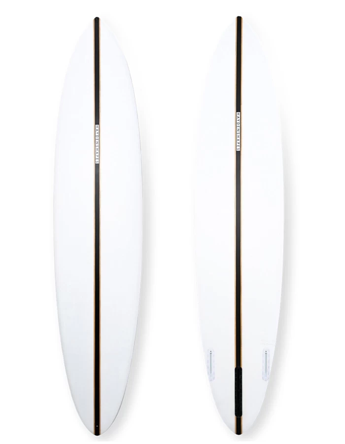 “This style of shape was a request from Craig earlier in 2020, to surf in average waves – as well as on the bigger days whilst being stuck at home. Its flatter rocker makes it a really great paddler; able to catch almost anything” – Hayden